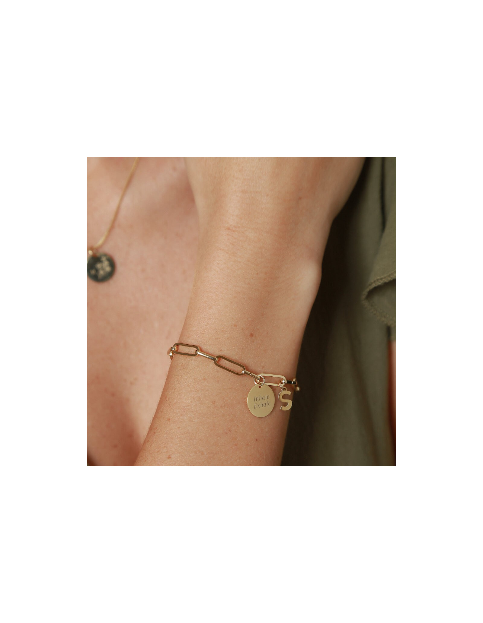 Personalised chain bracelet with an initial and a medal with the engraving Mama.