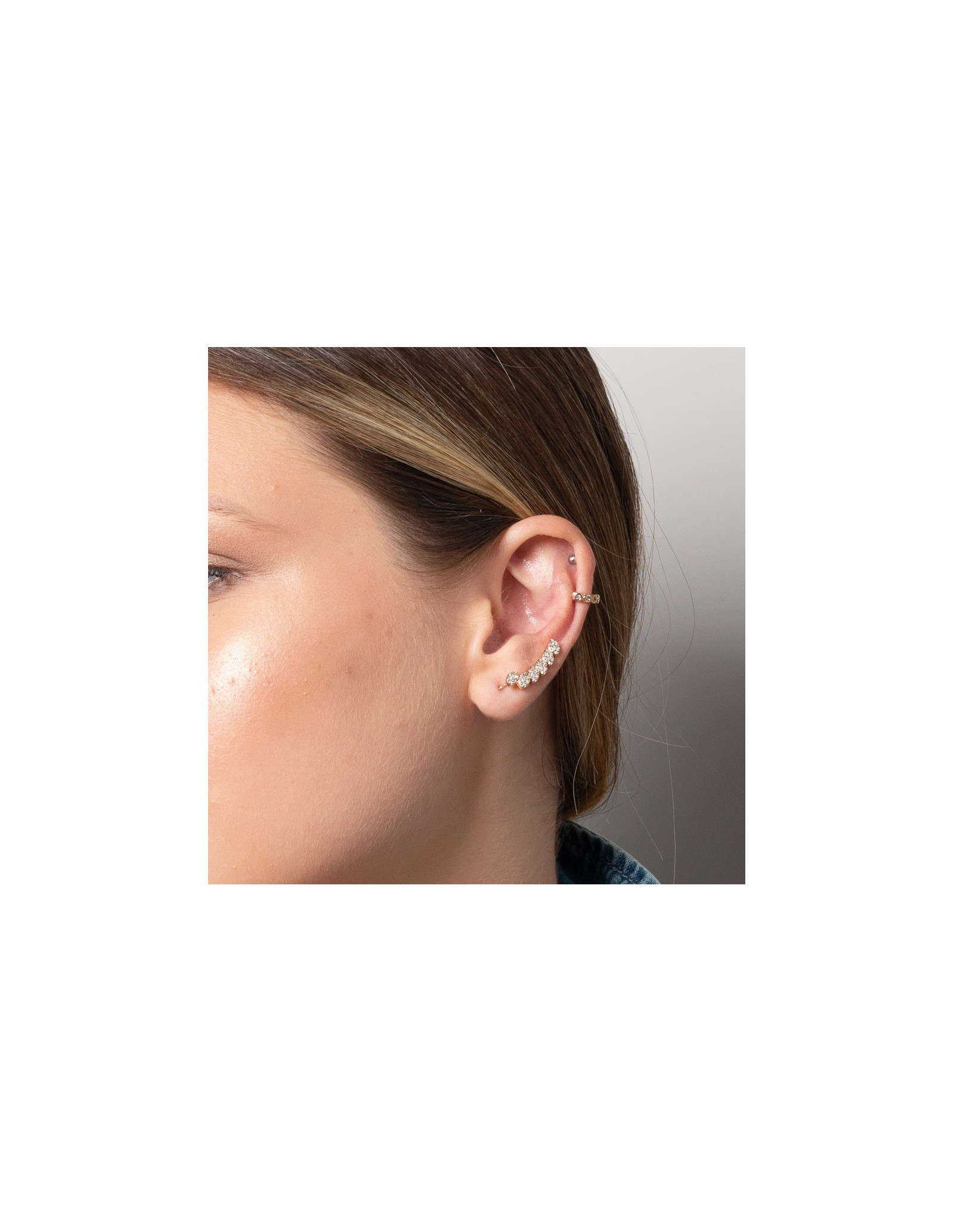 Ear Climbers earrings, 18k gold plated six ovals with embedded micro zirconias.