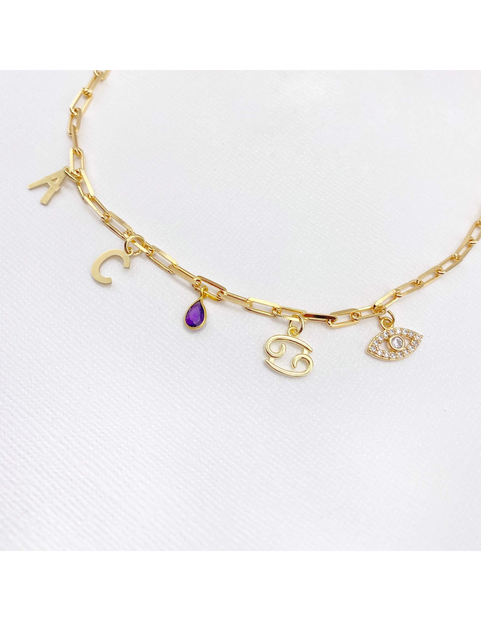 Gold plated greek eye charm decorated with zirconia. A protection and good luck charm to to personalise your jewellery.