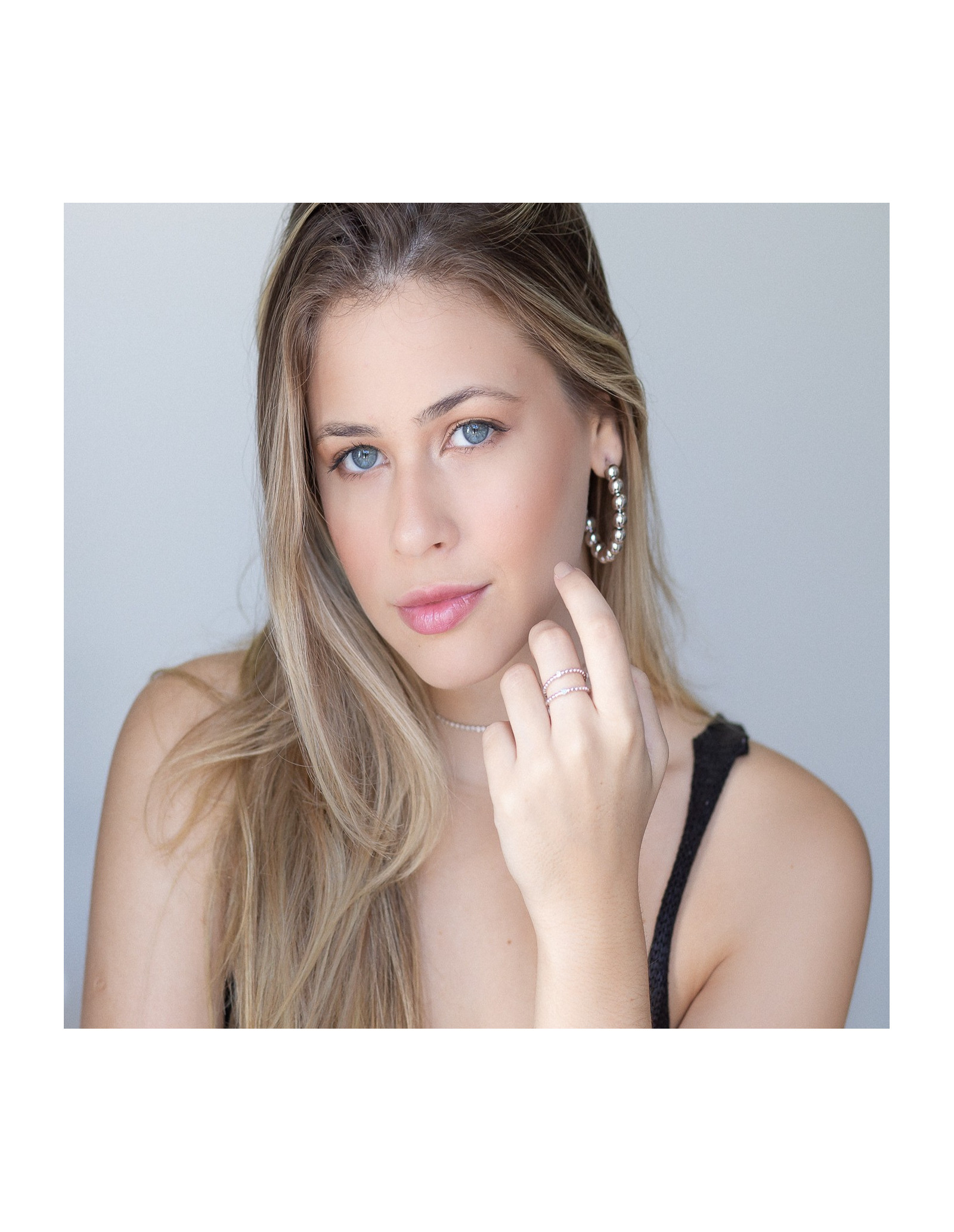 Pendientes tipo aro abierto decorado con 11 pelotas.