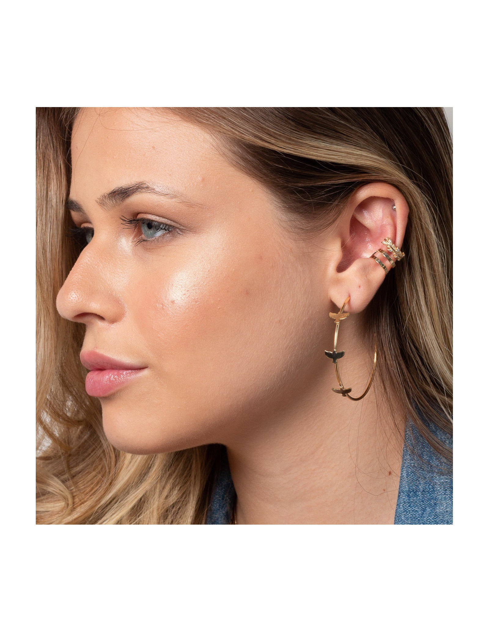 Pendientes tipo aro abiertos adornado con tres pajaritos.
