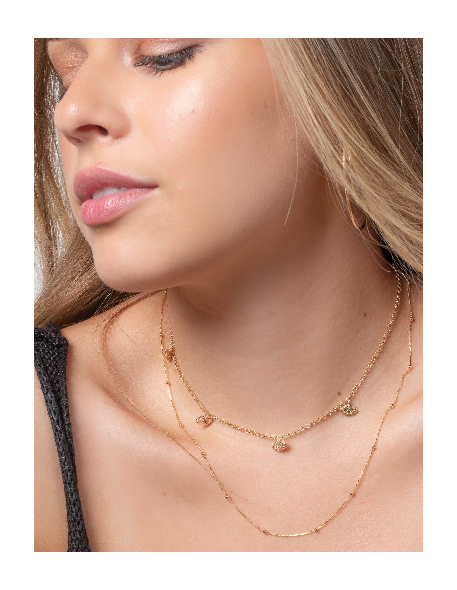 Collar corto con diseño minimalista y cinco colgantes en forma de ojo griego.