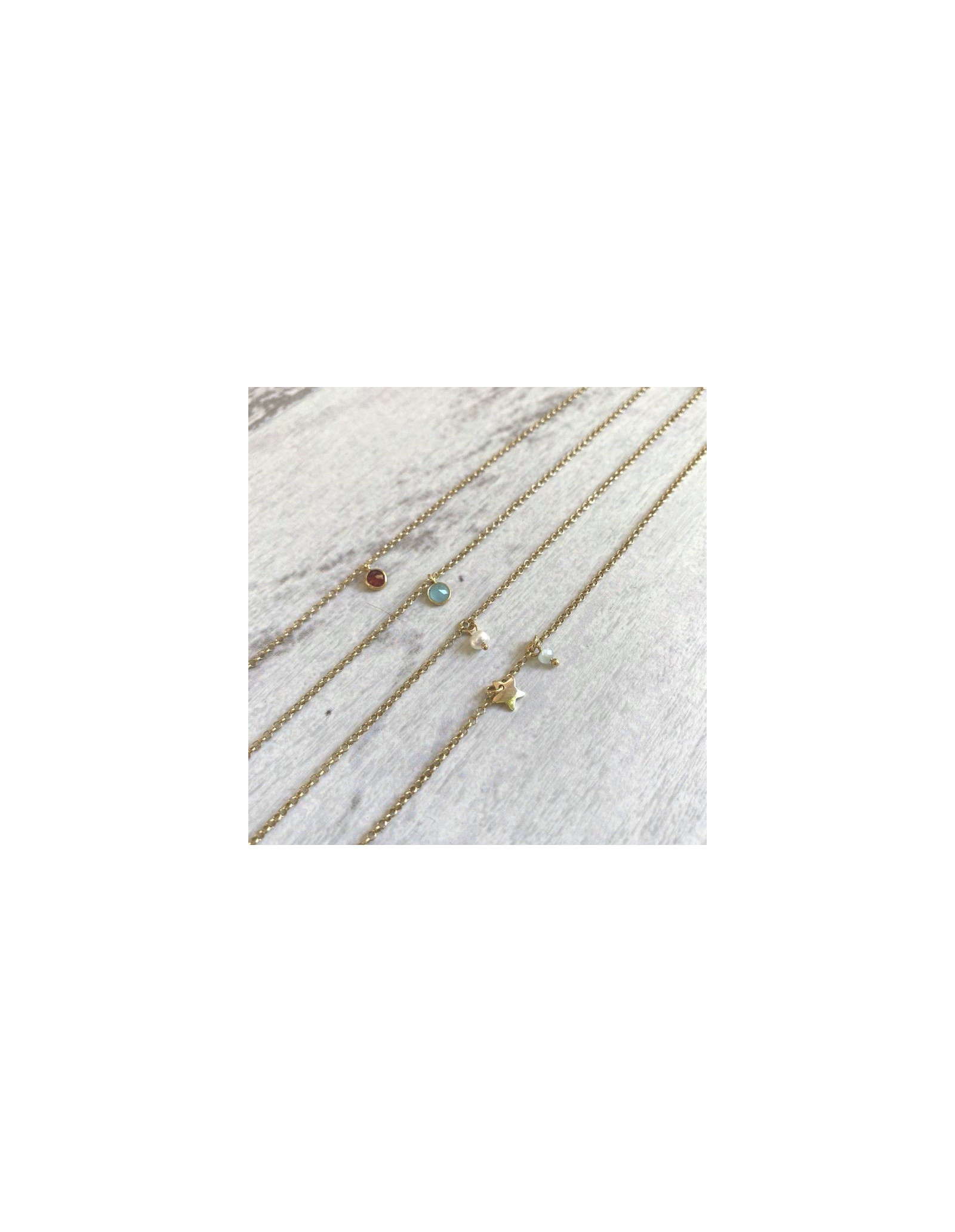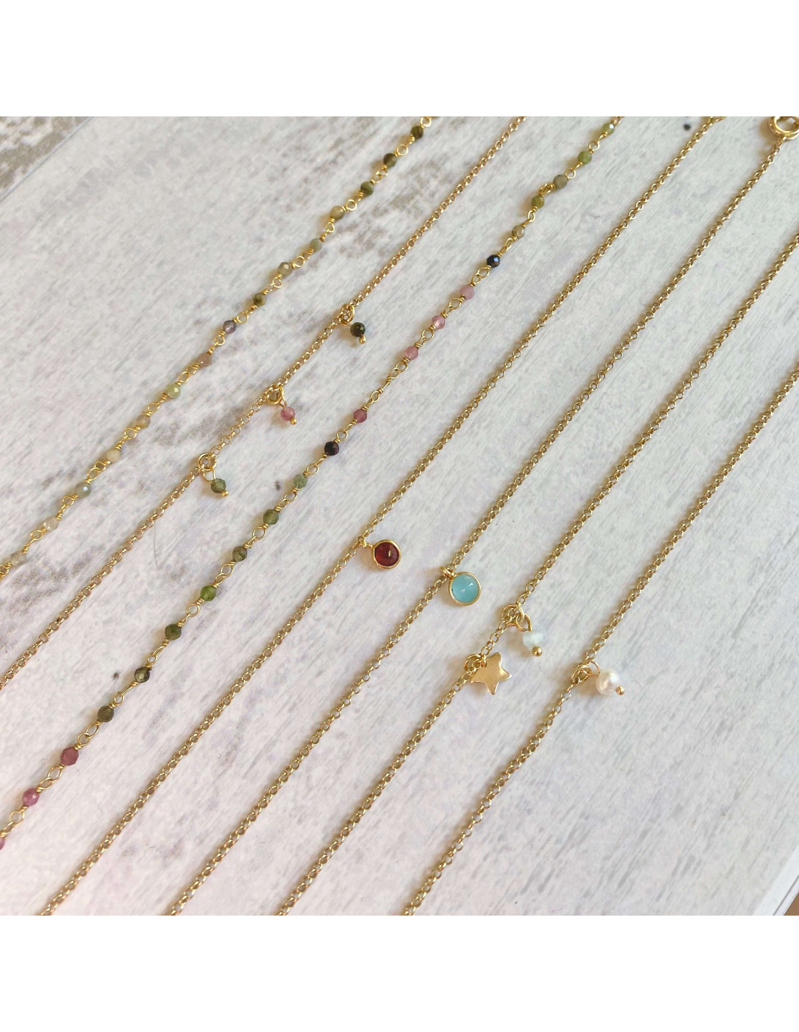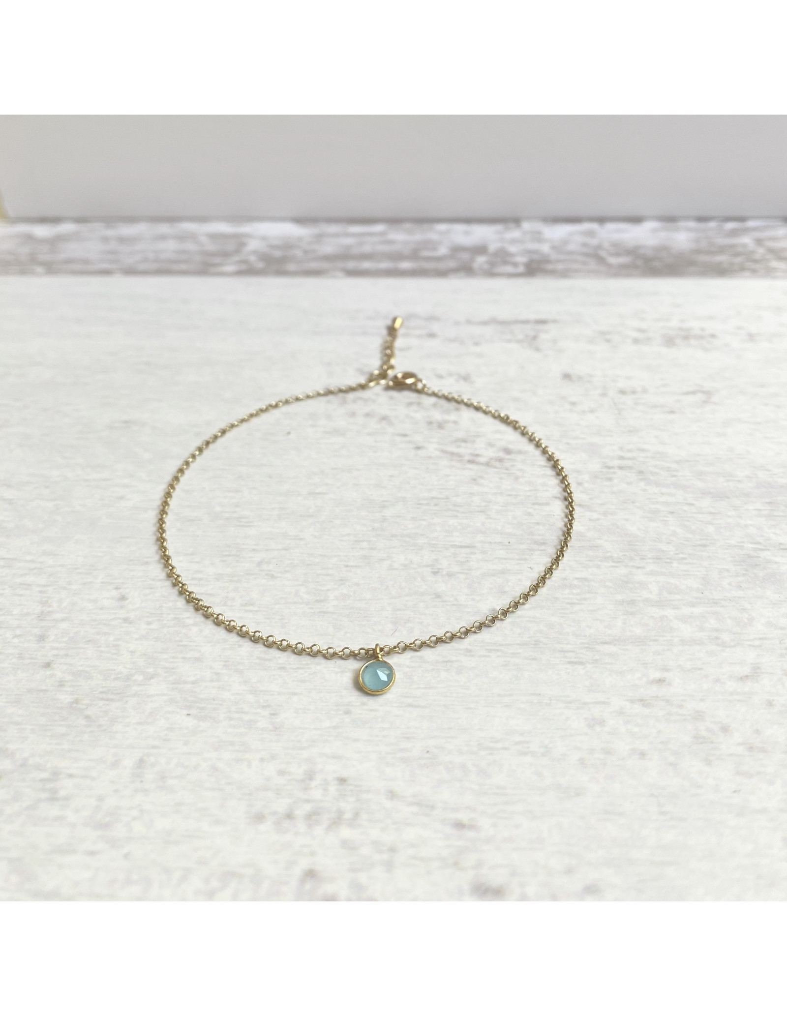 Tobillera con cadena de plata chapada en oro, decorada con un colgante de piedra natural.