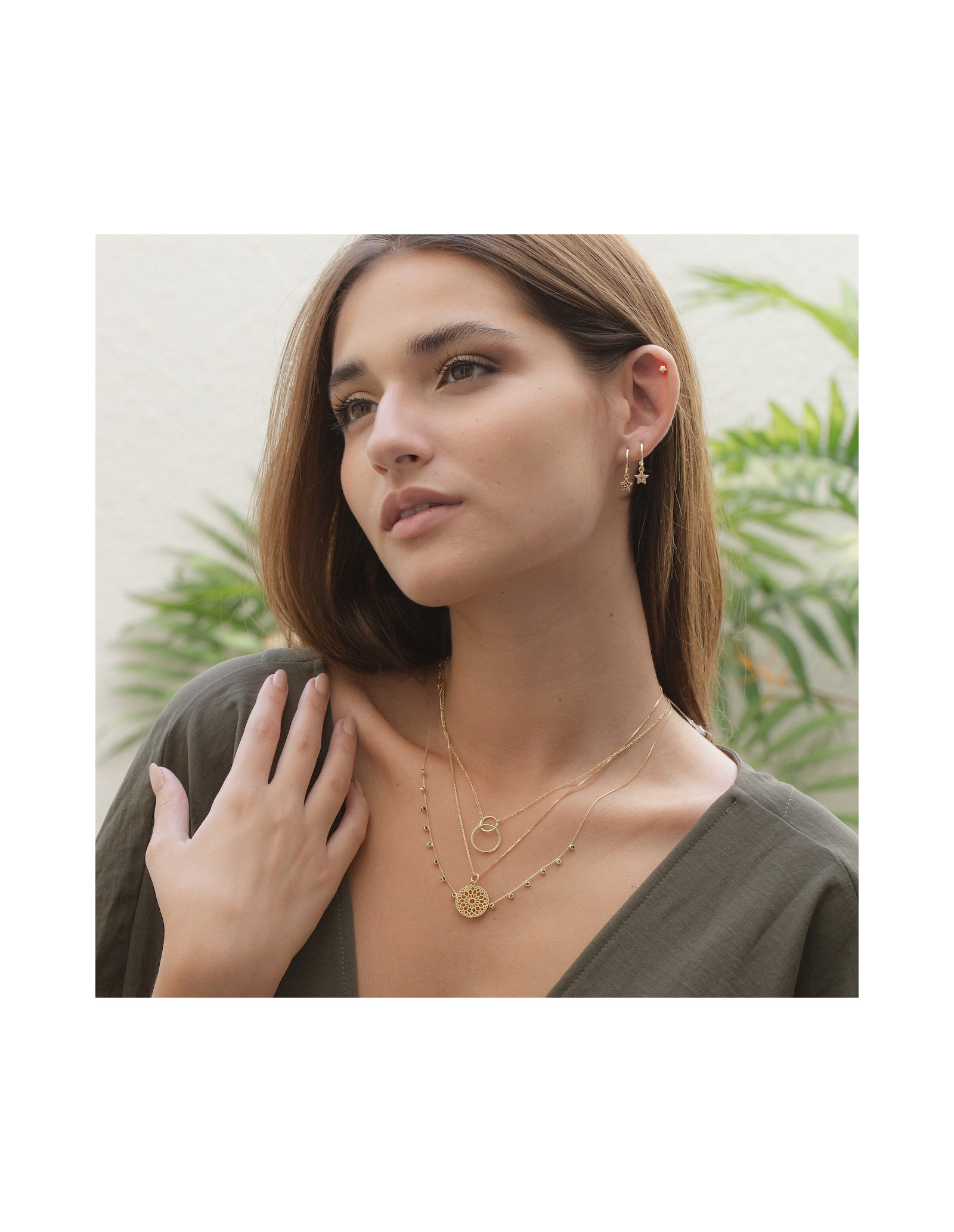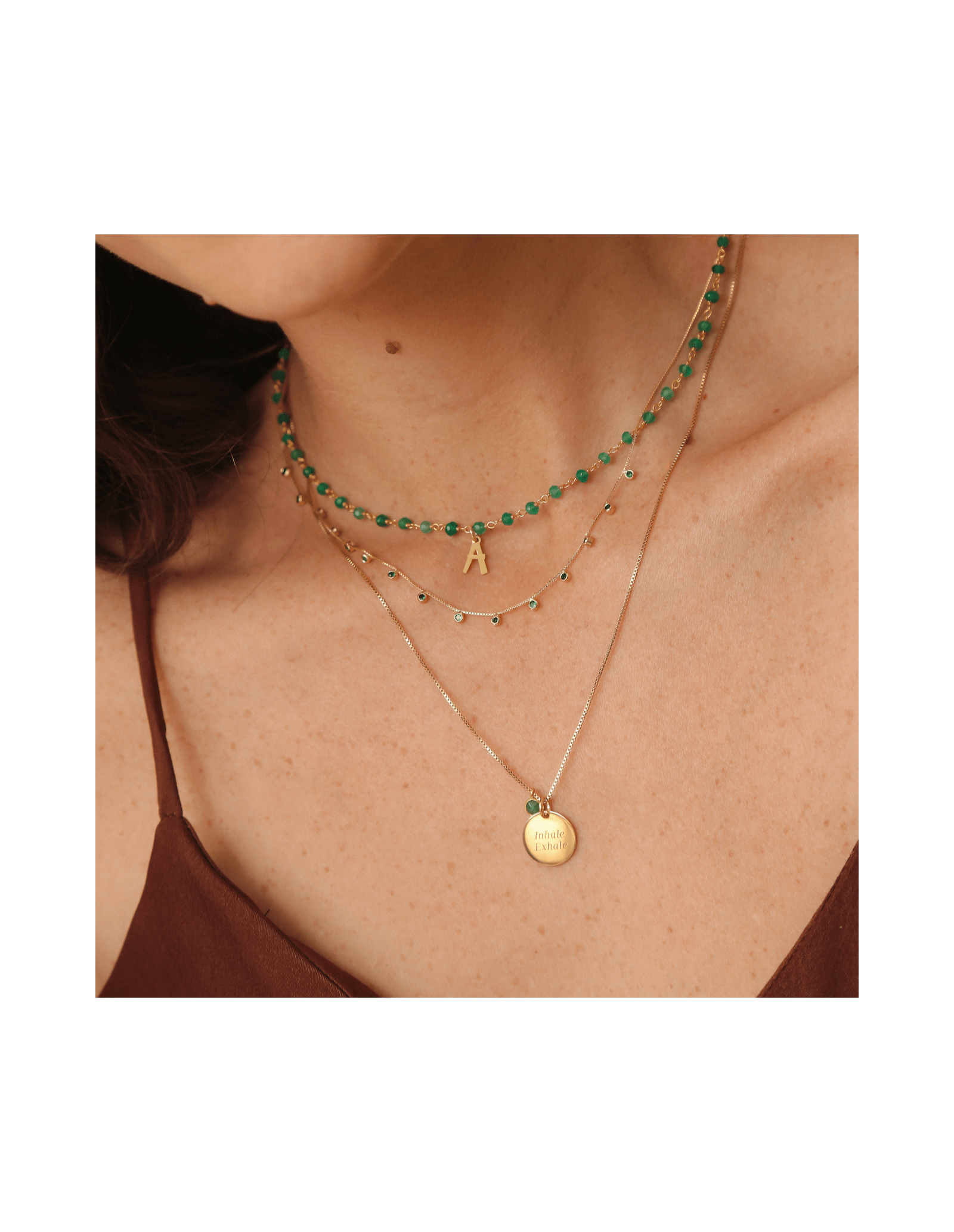 Gargantilla estilo choker con diseño minimalista, chapado en oro 18k con circonitas blancas, negras o verdes.