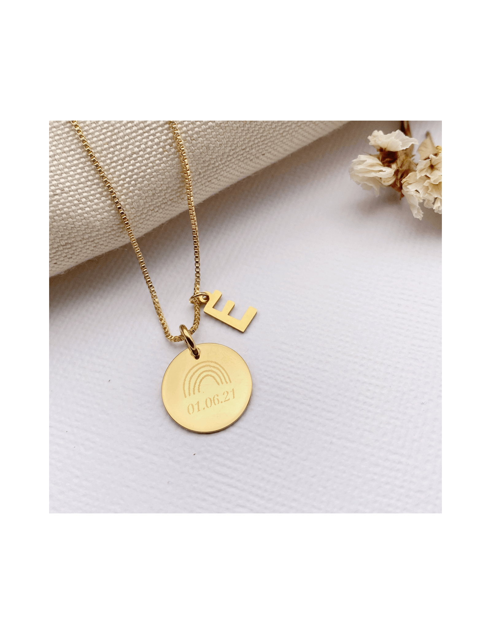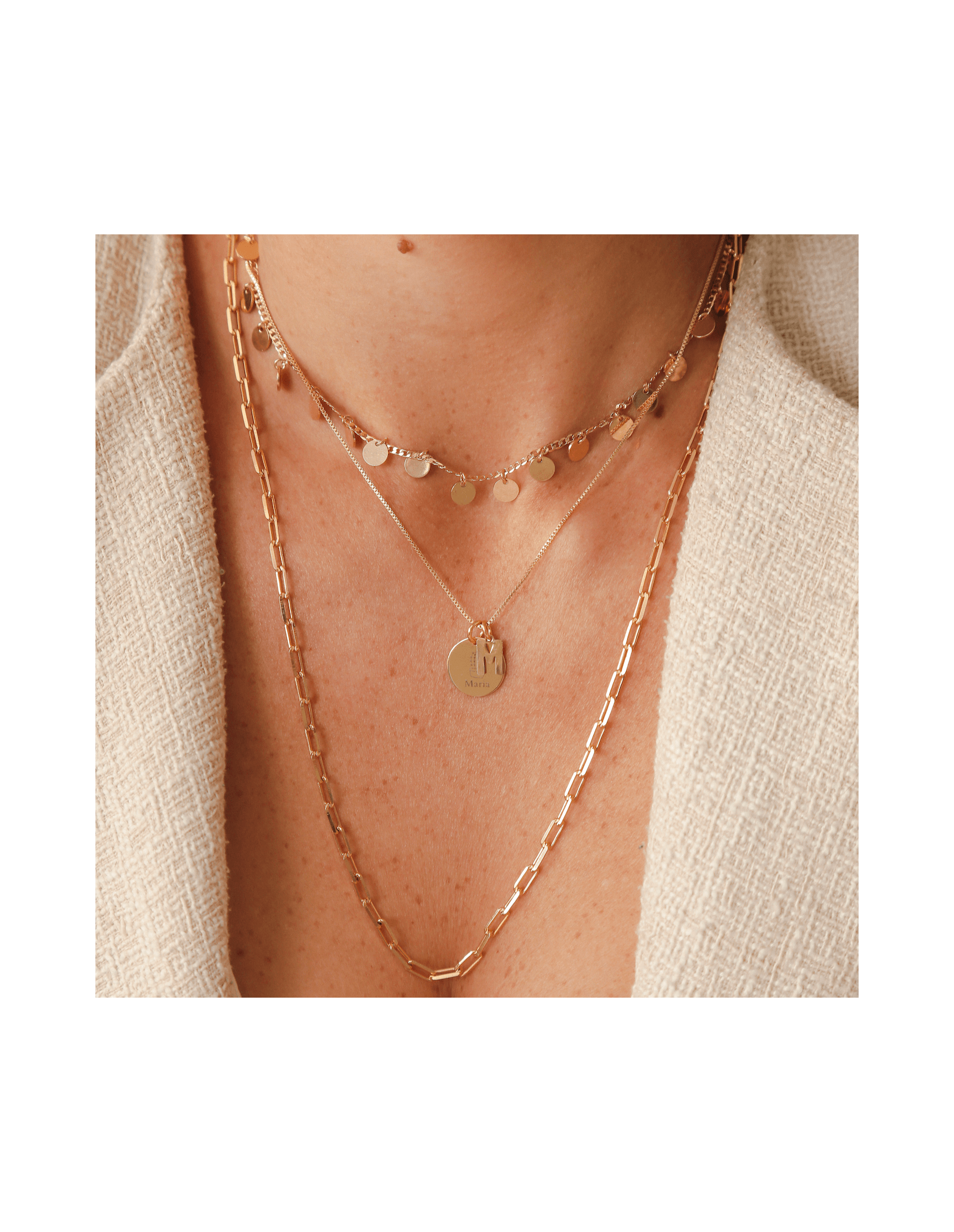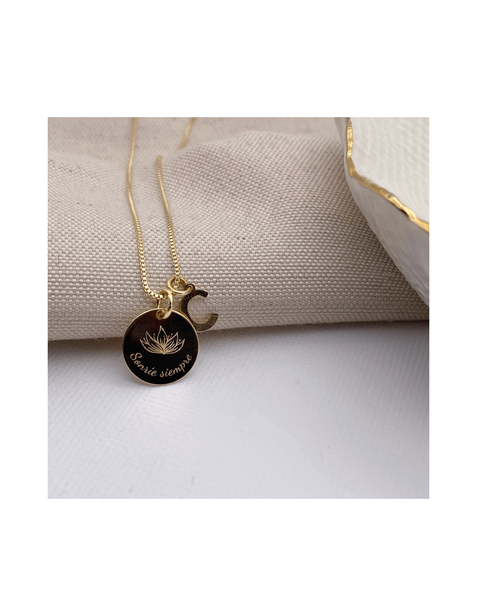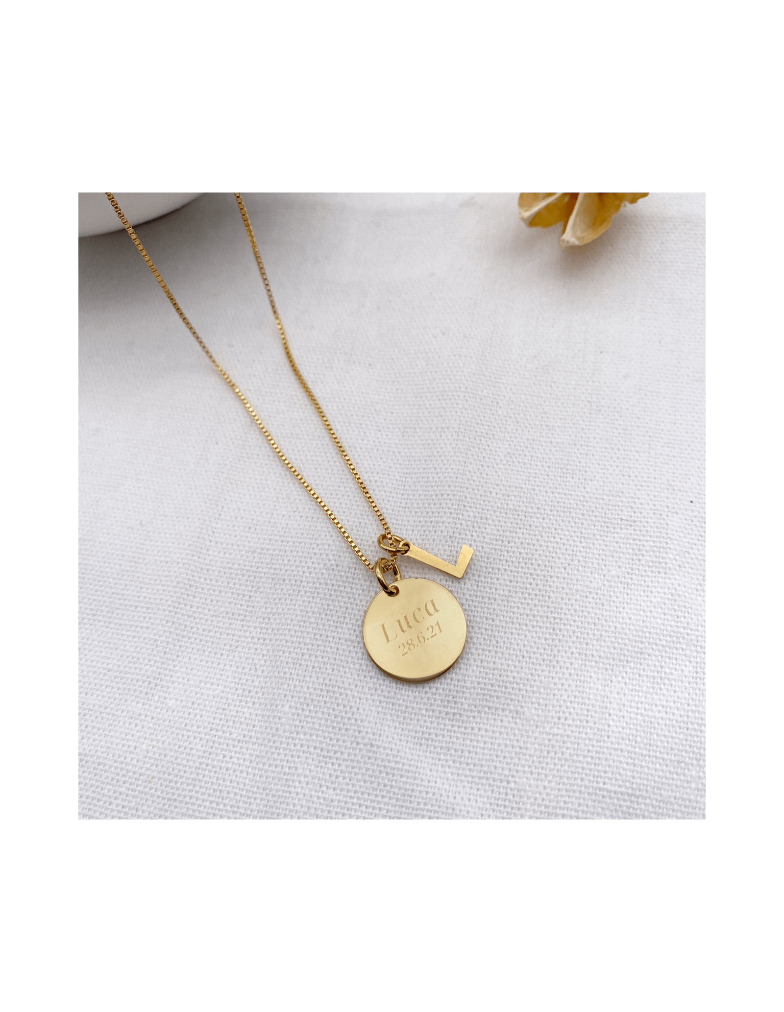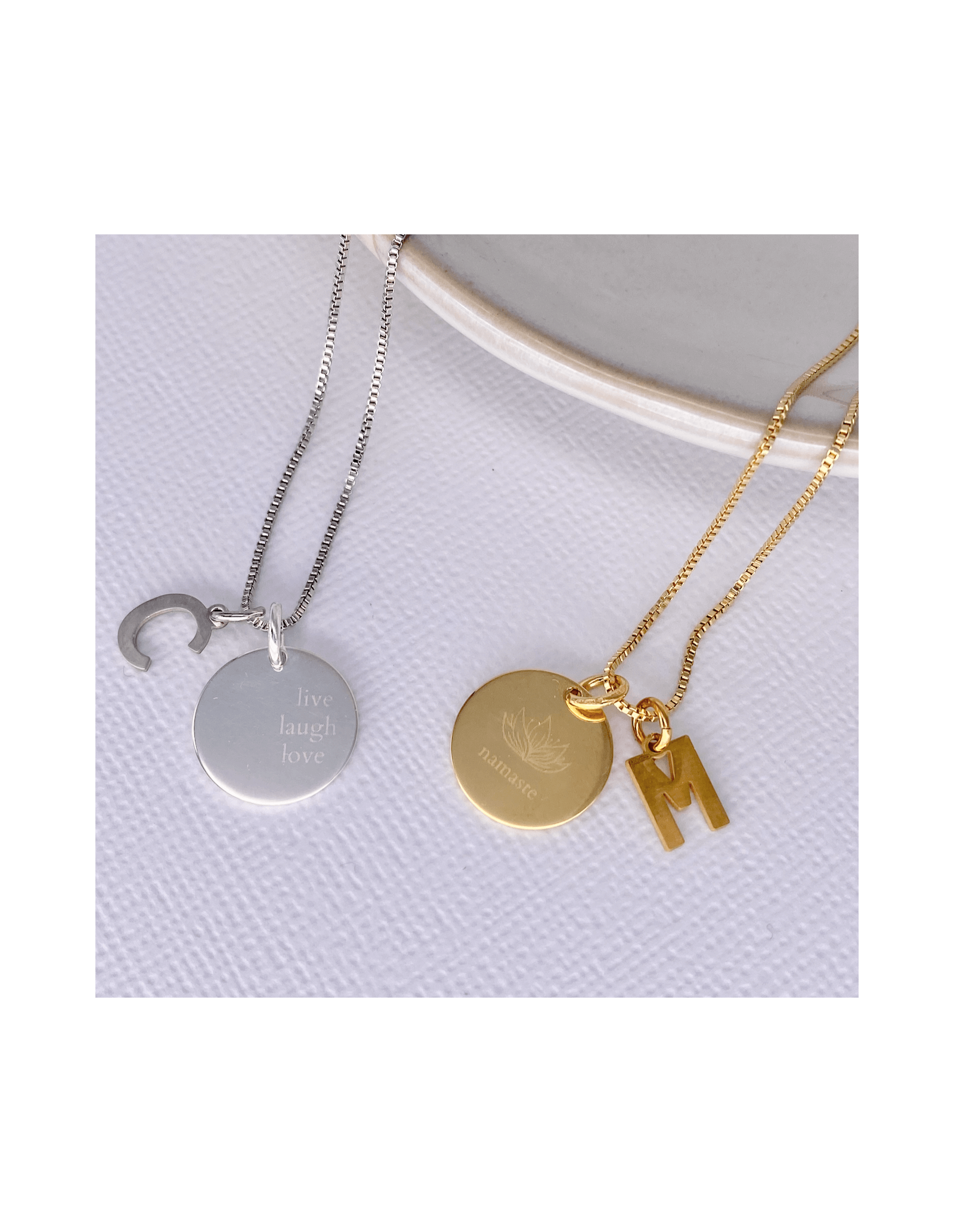 Pack dos collares personalizados con una inicial y placa que permite grabar una frase o un icono con un nombre, fecha o palabra.