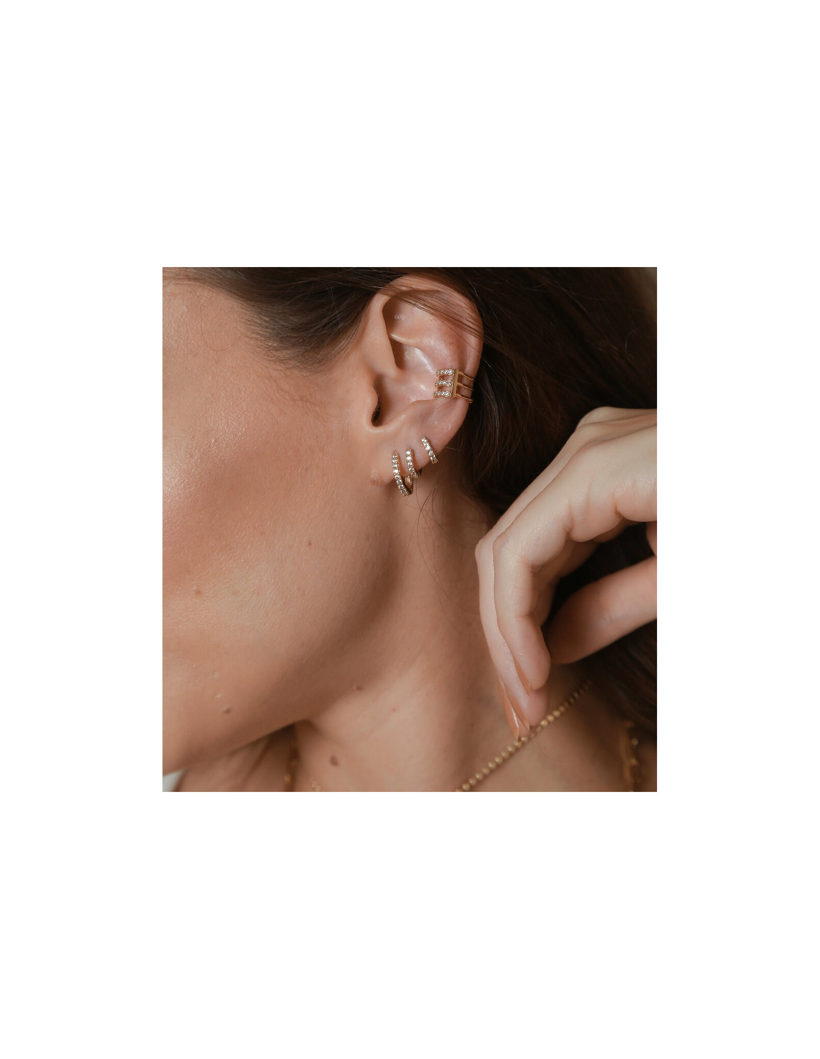 Pack de três brincos de argola mini decorados com micro zirconias cravejadas.