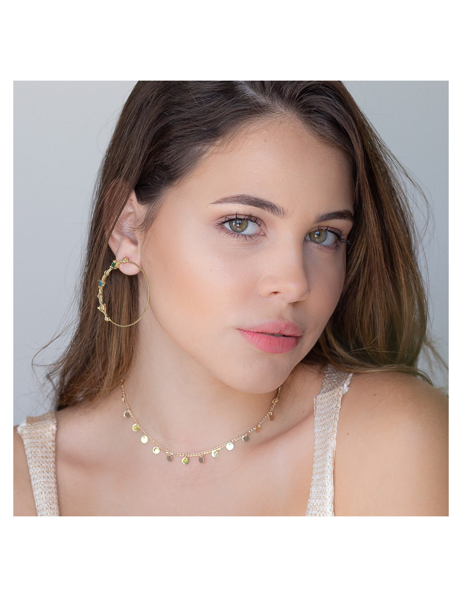 Últimos artigos em stock Brincos Argola Alessia EFBJ102 32,00 € Brincos de argola com design exclusivo, decorados com bolinhas.