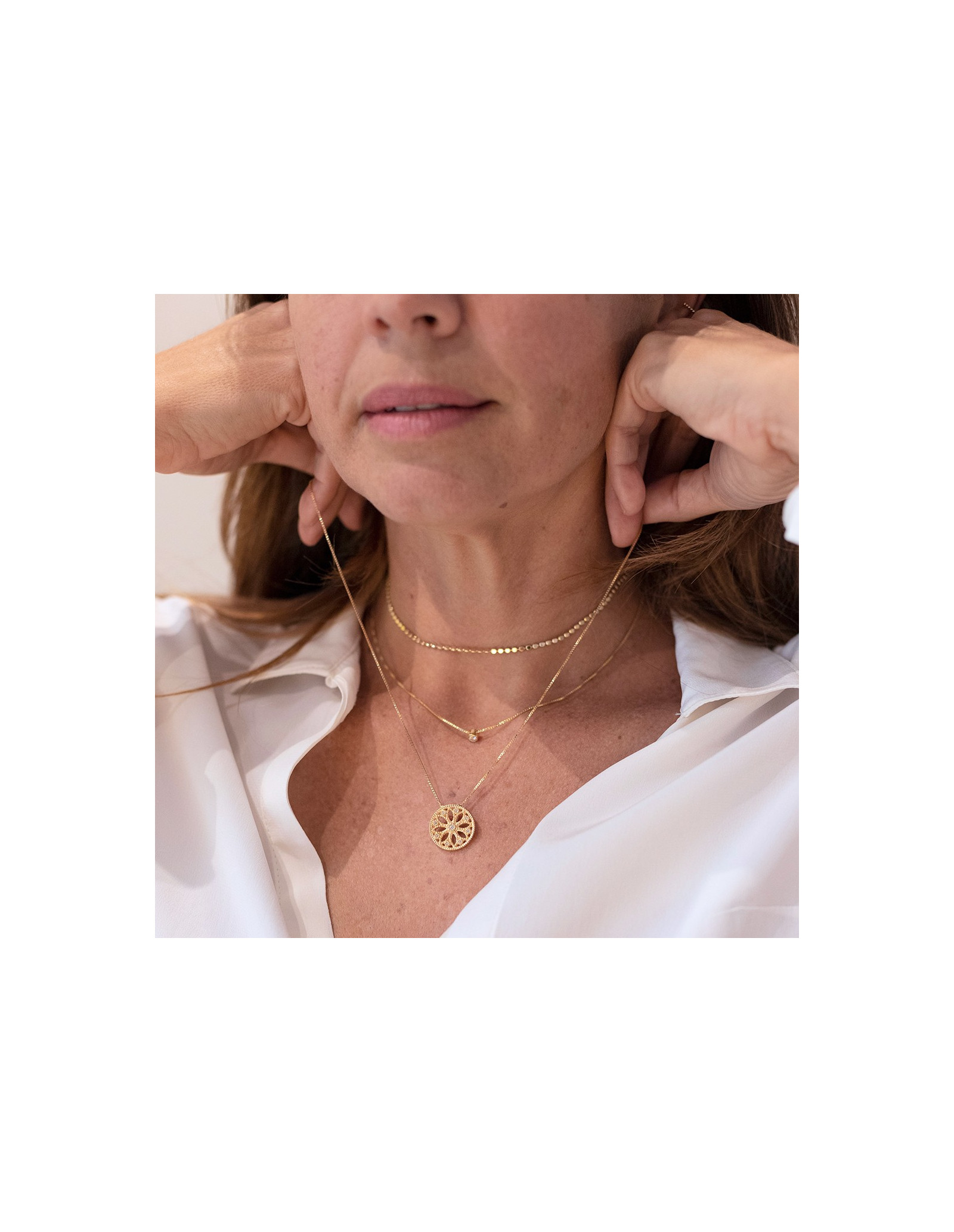 Colar gargantilha minimalista com detalhes de pontinhos.