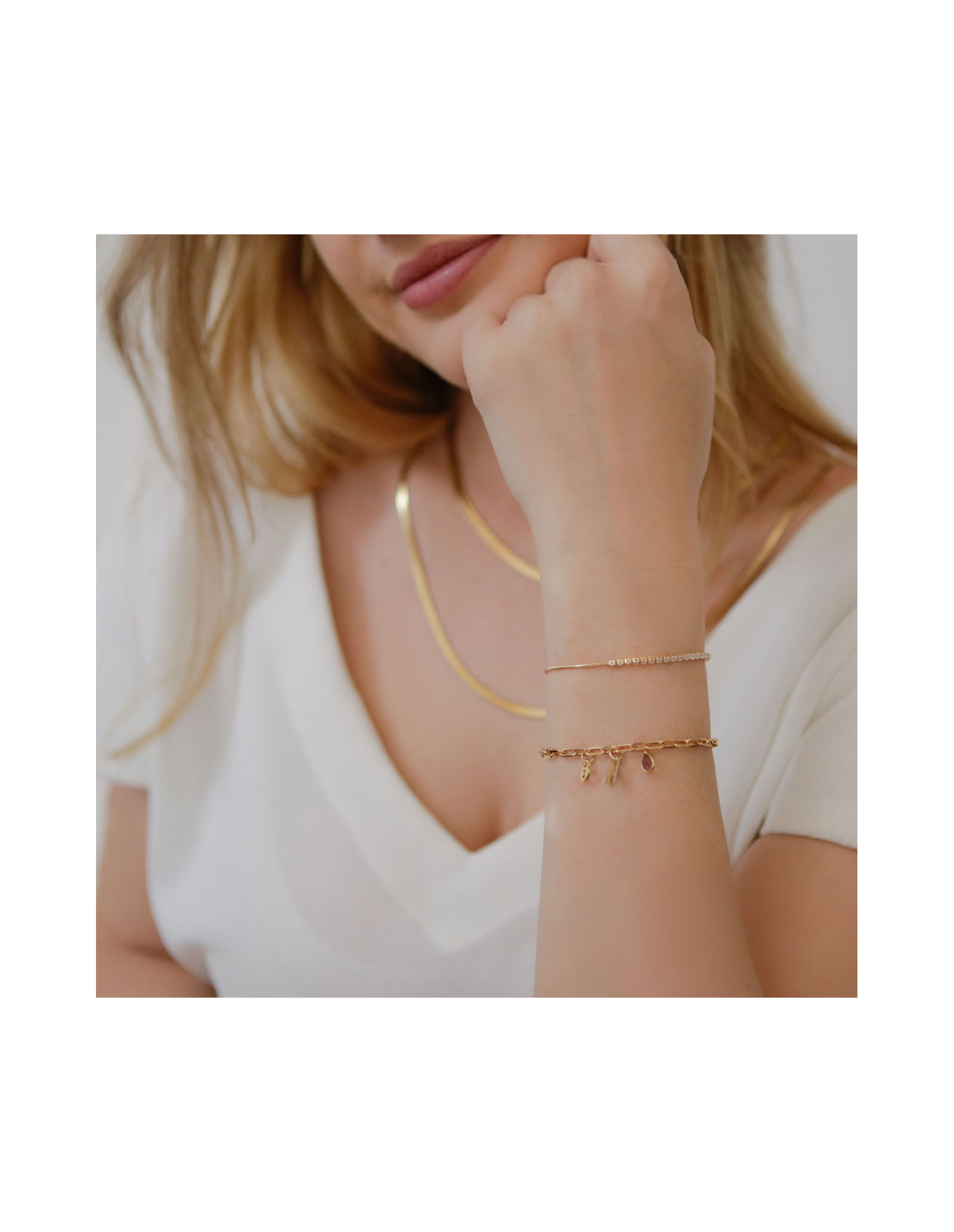 Ideal como base para a sua pulseira personalizada. Adicione os seus charms favoritos ao carrinho e lembre-se de incluir a ordem dos charms ou o nome que deseja criar nas notas do pedido no checkout.