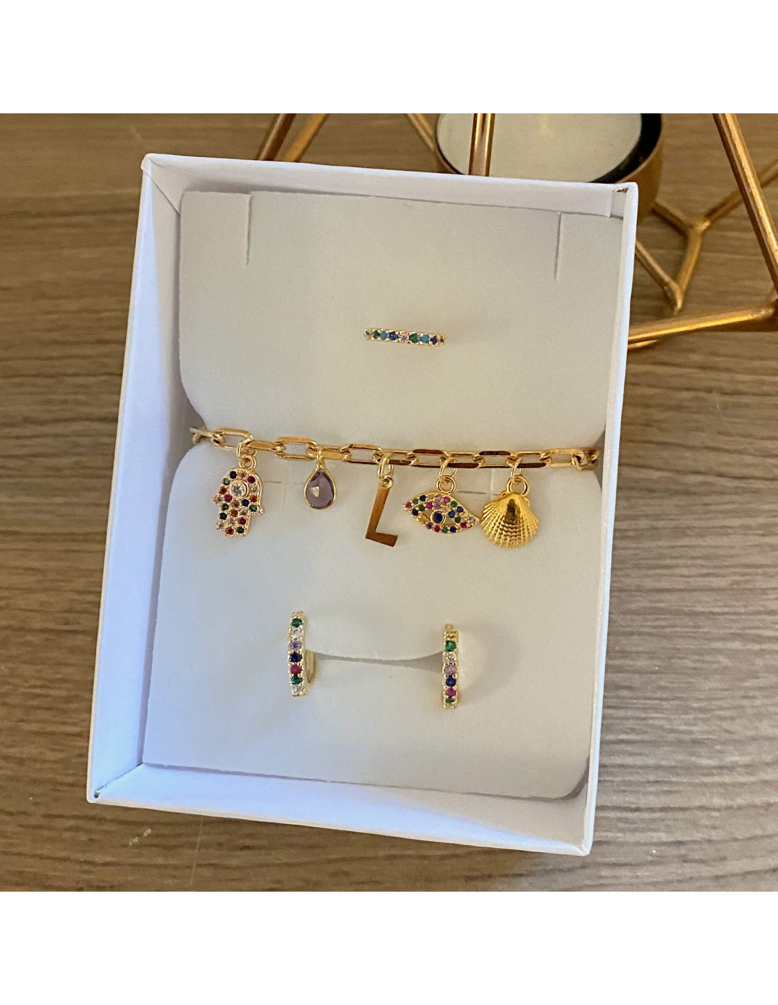 Pingente banhado a ouro e decorado com zirconias. Um amuleto de proteção e boa sorte para personalizar suas joias.