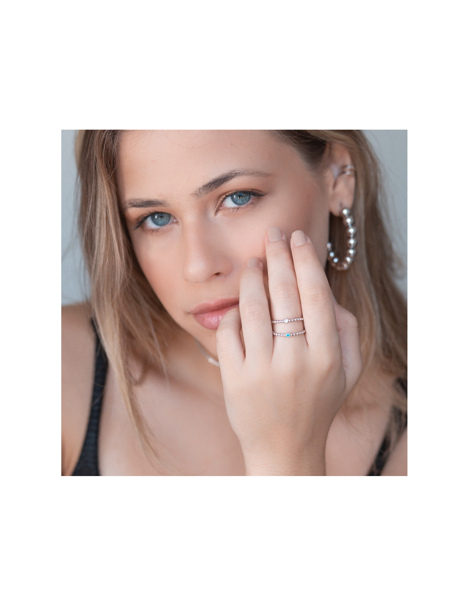 Anel minimalista com bolinhas e detalhe em zircônia branca.